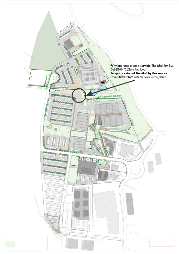 Si informa la gentile Clientela che, per la presenza di un cantiere, a partire dal 20 aprile 2026 e fino al termine dei lavori, la fermata di partenza del servizio The Mall by Bus presso il Centro Commerciale è spostata in prossimità del ponte Tramor, presso i parcheggi sotterranei.