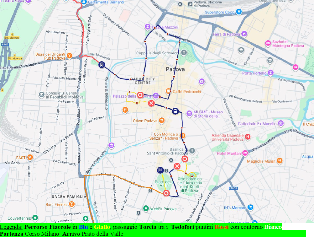 Tragitto dei tedofori attraverso le vie del Centro Città da Corso Milano a Prato della Valle