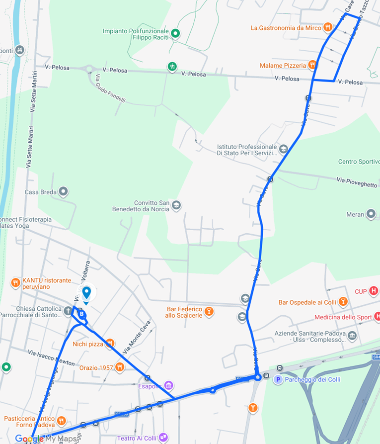 Il percorso si svolgerà partendo dal Capolinea di via Lagrange, proseguendo per via Cave, via Tazzoli, e via Tartaglia, per poi rientrare su via Cave e fare ritorno al capolinea di via Lagrange come da planimetria del percorso qui in basso.